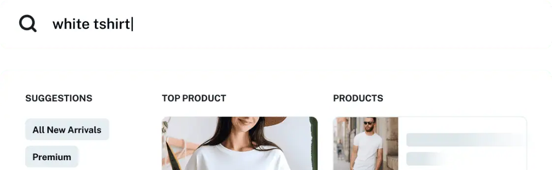 Vyhledávání zajistí, že vaši zákazníci získají ty nejrelevantnější výsledky díky více než 100 funkcím, jako je našeptávač, oprava překlepů a další.
