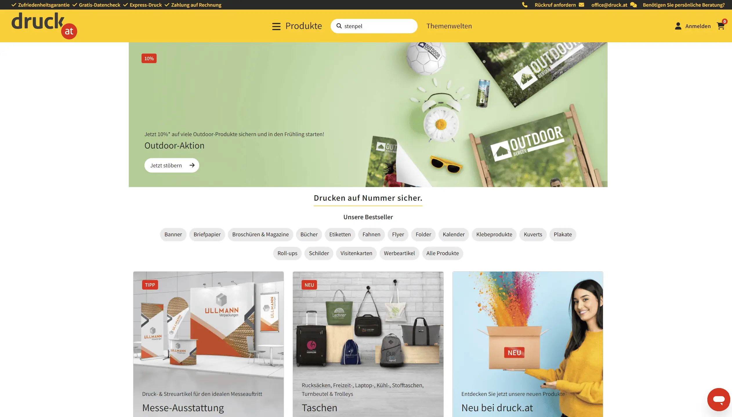 Druck.at má dlouholeté zkušenosti v oboru a nabízí velký výběr tiskových produktů. Druck.at má silný tým 250 profesionálů a působí jako součást skupiny Cimpress. Jejich cílem je poskytovat rychlé služby a zároveň kladou velký důraz na spokojenost klientů.